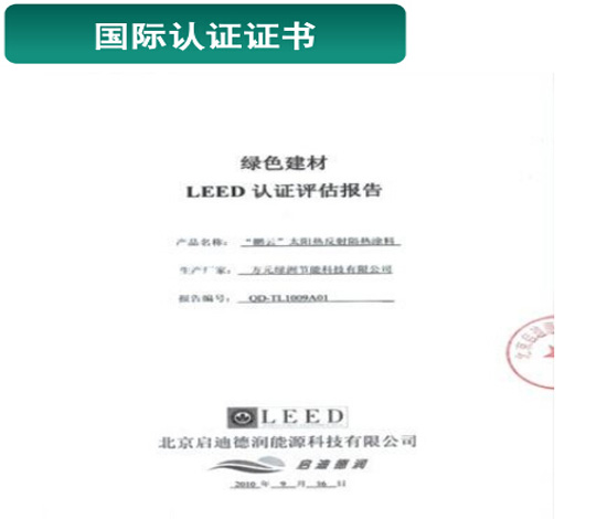 “鹏云”太阳热反射隔热涂料获美国绿色建材LEED认证