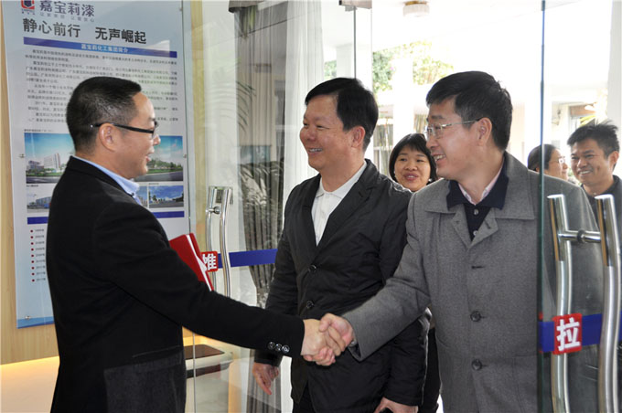12月18日,广州珠江化工集团有限公司董事长叶智伟、副总经理邱星林、副总经理伍平稳、副书记巫俊宏带领技术部、生产部等单位负责人赴嘉宝莉参观考察。嘉宝莉集团常务副总经理许有为、嘉宝莉科技总经理王代民、嘉宝莉科技常务副总经理刘志刚等领导接待了叶董事长一行,并与客人进行了亲切交流。