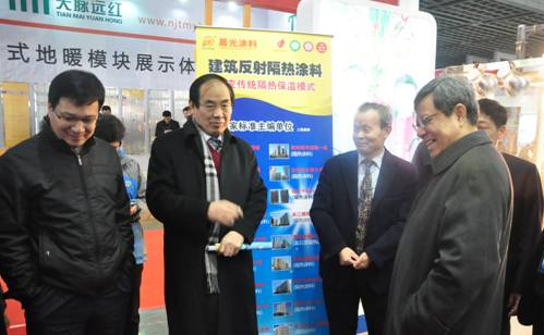12月19~21日,由国家住房和城乡建设部科技与产业发展司,江苏省墙体改革办公室主办了中国十大中心城市2014首届夏热冬冷地区绿色建材展览会在南京国际展览馆举办。由江苏晨光涂料有限公司发明的建筑反射隔热涂料保温系统在开幕式当天受到了原建设部副部长郑坤生等领导的参观视察。