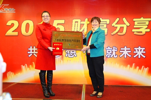 12月24日,2015广东华兹卜化学工业有限公司/摩尔经销商大会暨财富分享会在中山市举行。会上,广东省涂料行业协会授予了华兹卜化工“广东省天然矿物涂料生产示范基地”牌匾。