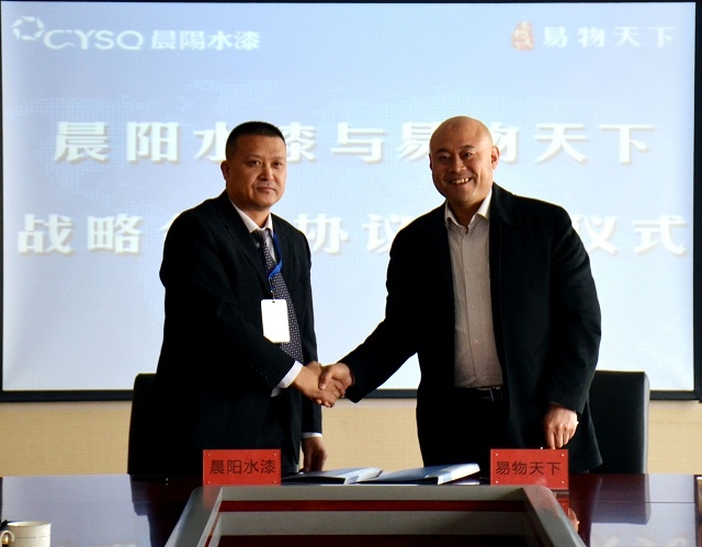 12月29日,河北晨阳工贸集团有限公司与易物天下签署合作协议。根据协议内容,晨阳水漆将借力易物天下网络平台开展全面推广及易物业务。