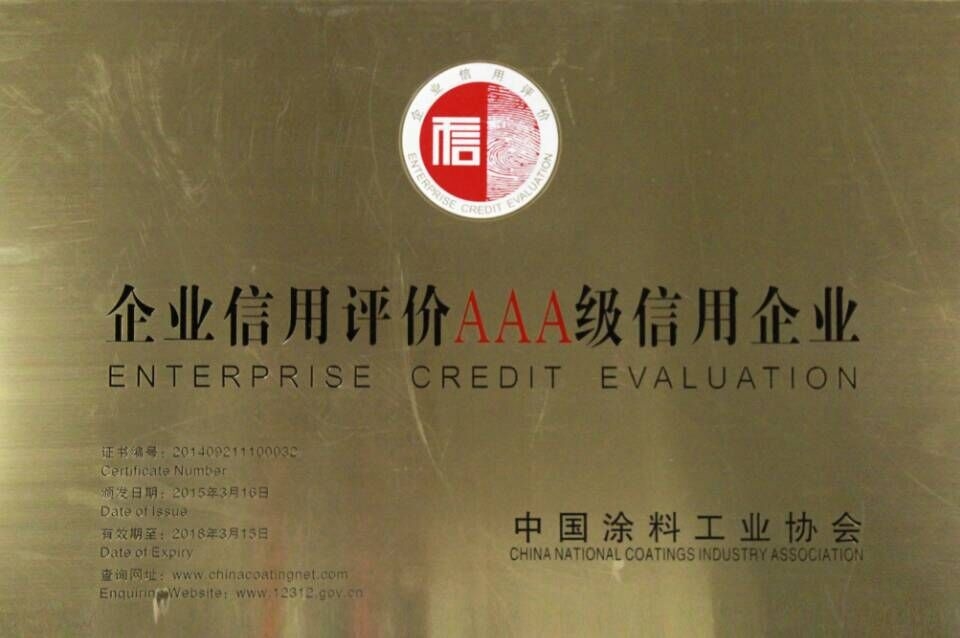 为增强企业诚信意识,提高行业自律水平,推动行业转型升级,在商务部和国资委的统一指导下,由中国涂料工业协会组织实施的涂料行业信用评价近日结果揭晓,广东华隆涂料实业有限公司在此次信用评价活动中,荣获“企业信用评价AAA级信用企业”称号,有效期三年。