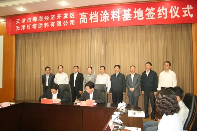2013年10月10日上,灯塔涂料与天津市静海县经济开发区举行了高档涂料基地项目签订仪式。灯塔涂料作为该项目的投资主体,项目总投资约10亿元人民币、占地约305亩、建筑面积18万平米,以军工及航空航天涂料系列、工业防腐涂料系列、海上装备涂料系列以及环保型民用家居系列为主导产品。项目计划于2015年10月31日前竣工,2016年1月1日前投入生产,预计年产量可达5万吨,产值90500万元、利税11980万元。