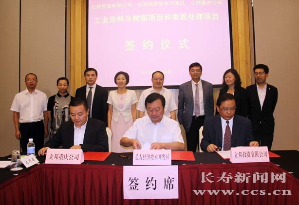 8月30日,世界著名涂料制造商—立邦投资有限公司与重庆长寿签订意向合作协议:在长寿经开区投资3.5亿元,建设2万吨/年汽车涂料、2万吨/年工业漆、2万吨/年树脂项目及年产10万吨/年表面处理项目。据悉,该项目将于2017年投产。