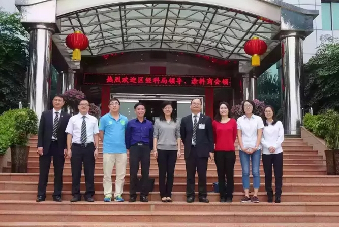 11月11日上午,顺德区经济和科技促进局副局长何绮君,顺德涂料商会会长胡景钊一行5人前往广东鸿昌化工有限公司参观考察。鸿昌化工总经理郭锡有、副总经理杨泽生及有关领导陪同参观,并与来访领导深入交流。