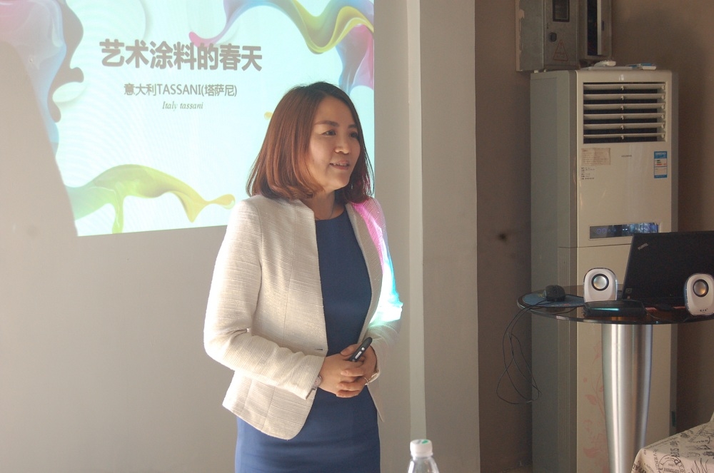 接着,TASSANI中国销售经理陈丽娟、黄莉分别就“艺术涂料风格”、“色彩基本知识及色彩搭配技巧”主题进行了讲解。