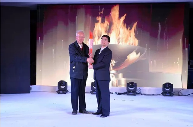 精化公司原总工程师汪道彰与华谊精化公司现任总工程师俞剑峰进行了“百年涂料,薪火相传”火炬接力仪式