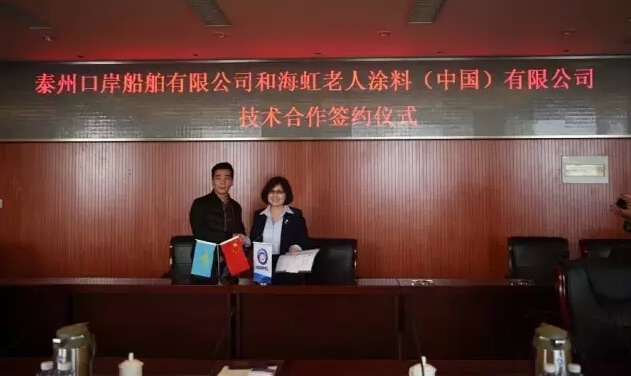 3月23日,海虹老人涂料(中国)有限公司与泰州口岸船舶有限公司签署技术合作协议,并于泰州口岸船舶有限公司挂牌成立“口岸-海虹老人涂装研发和测试中心站”。
