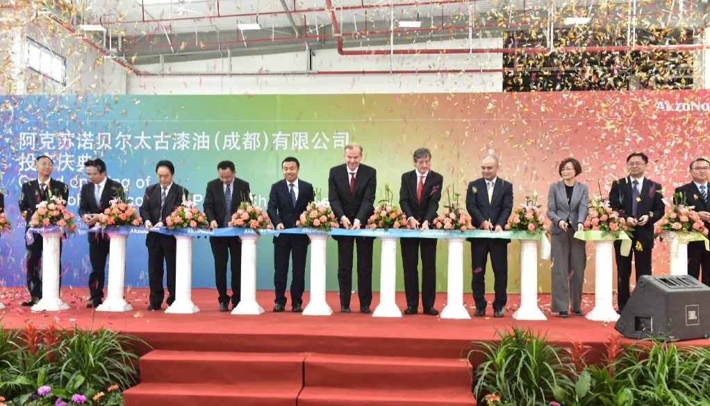 涂界记者了解到,在今年4月29日,阿克苏诺贝尔在中国的第四个、同时也是最大的装饰漆生产基地正式投入运营。该生产基地位于成都邛崃市,占地面积5.5万平方米,总投资超3亿元,计划到今年底前形成5000万升水性装饰漆年生产产能,到2017年底将具备1亿升产能。