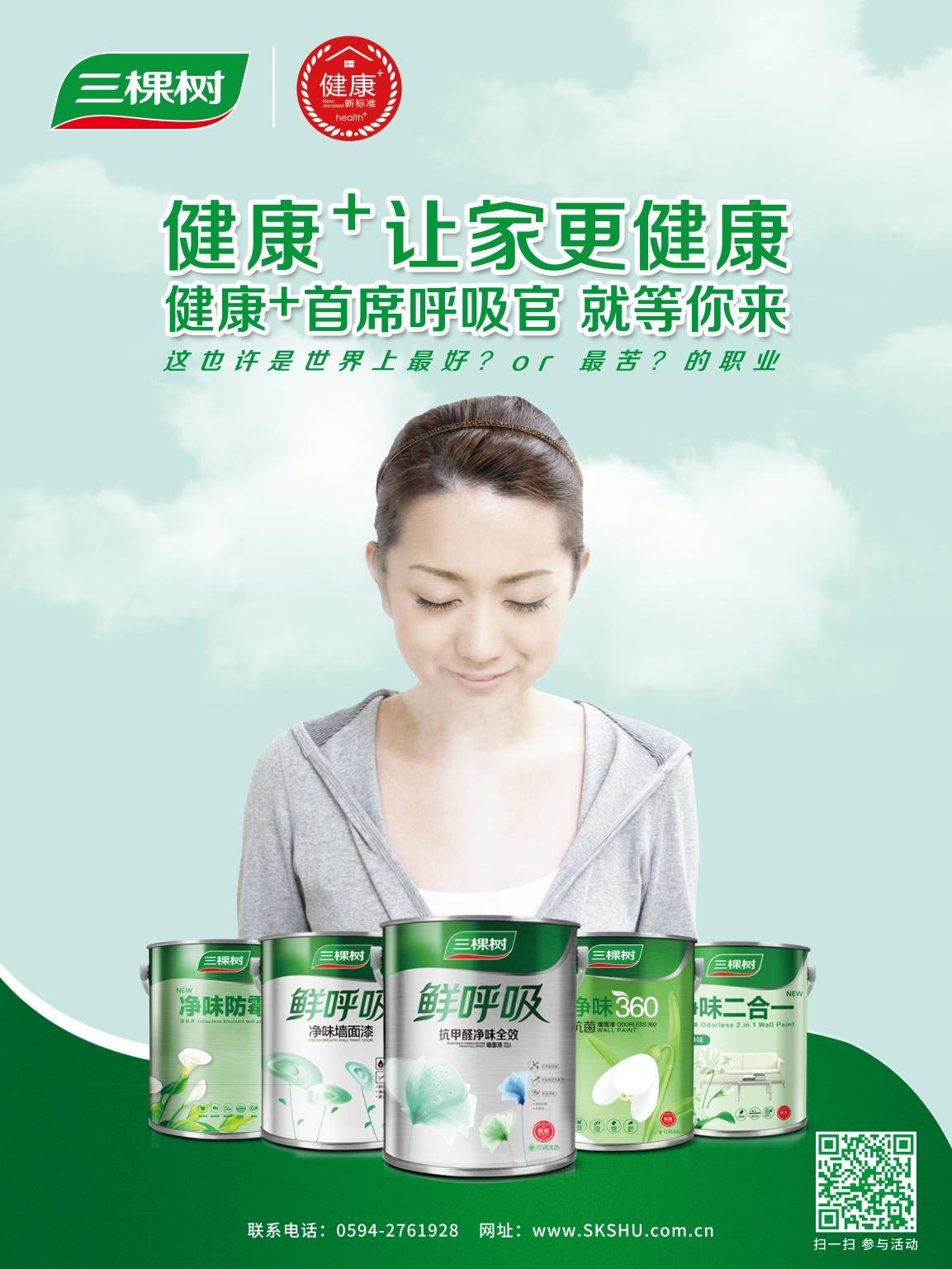据了解,因为用户对涂料健康的评判依据之一是味道。三棵树就以此为突破口,开发更为净味、更为健康的产品。也是从那开始三棵树下定决心对标国际各大健康标准,以超越为目标,重新树立全球涂料行业健康新标准。在三棵树6000平米的国家级技术中心里,科技创新成为企业蓬勃发展的源动力,每天有数百位专业科研人员在为涂料健康工作着。三棵树强大的研发创新支持体系,经过多轮技术攻关,终于成功实现了从健康到“健康+”的匠心飞跃。三棵树制定的行业健康+五项新标准——VOC为国标含量的1/12,游离甲醛达到食品级标准,苯系物未检测出,优于欧美标准的11类重金属限量标准,制定了行业内还没有的气味判定标准……正引领着健康涂料的新趋势。再加上恰逢三棵树成功上市,健康+首席呼吸官的招聘活动想必将在社会上刮起一阵健康+,健康家的清新旋风。