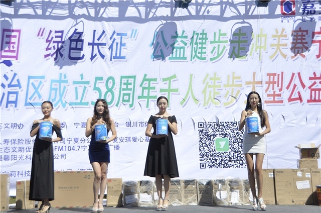 本次大型公益活动由自治区文明办、自治区团委、宁夏广播电视台、银川市体育旅游局等单位联合主办,中国人寿、宁夏安琪爱心基金会、宁夏生态文明促进会等单位联合承办。由中国本土涂料领先品牌嘉宝莉独家冠名赞助。自治区文明办专职副主任高建博、自治区团委工农青年部副部长温皓等领导出席当天的启动仪式并致辞。嘉宝莉漆宁夏营销中心总经理赵有华也在启动仪式上致辞。银川三位嘉宝莉漆经销商共同鸣放出发礼炮。