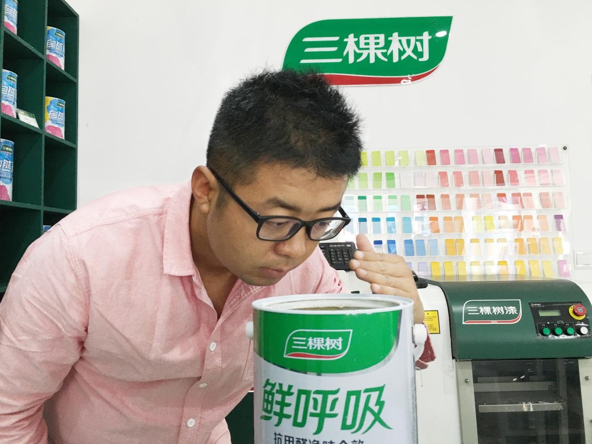 在走访专卖店的过程中,“健康+首席呼吸官”苏辉认真而细致地对健康+系列新品做气味、成分等测试与评判,并将不符合“健康+”新标准的专卖店问题做了详细的记录以便之后向三棵树总部汇报,且考察了专卖店导购对新品话术的掌握程度,同时进行了现场话术宣导。在碰到进入专卖店的消费者时,“健康+首席呼吸官”苏辉也是主动与他们交流,了解他们对三棵树“健康+”系列产品的认知程度。最终,苏辉会以考察报告的形式回总部进行汇报。