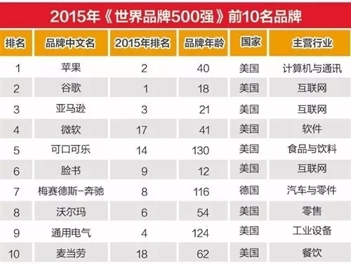 榜单显示,苹果(Apple)重返第一宝座,谷歌(Google)退居第二,亚马逊(Amazon)继续保持季军的位置。中国入选的品牌共有36个,其中入围百强的品牌有国家电网、工商银行、腾讯、CCTV、海尔、中国移动、华为、联想等。