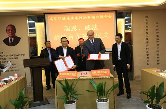 瑞恩公司董事长王登伦介绍说,去年,公司抓住供给侧结构性改革机遇,着力推进产品提档升级,作出了引进国外先进水性涂料生产技术和工艺的战略决策。德国威法公司致力于为客户提供最佳的涂料解决方案,在水性涂料行业处于领先地位。通过与威法公司的三次相互考察,双方一致认为,共同推进环保型水性涂料的本土化生产具有重要意义,最终达成合作意向。