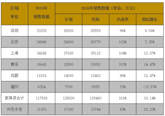 涂界记者注意到,展辰集团在北京举行的2017年展辰集团家具漆全国经销商大会上披露了2016年“成绩单”:2016年,集团家具漆销售收入12.946亿元,同比增长10.14%;集团装修漆增长35%。