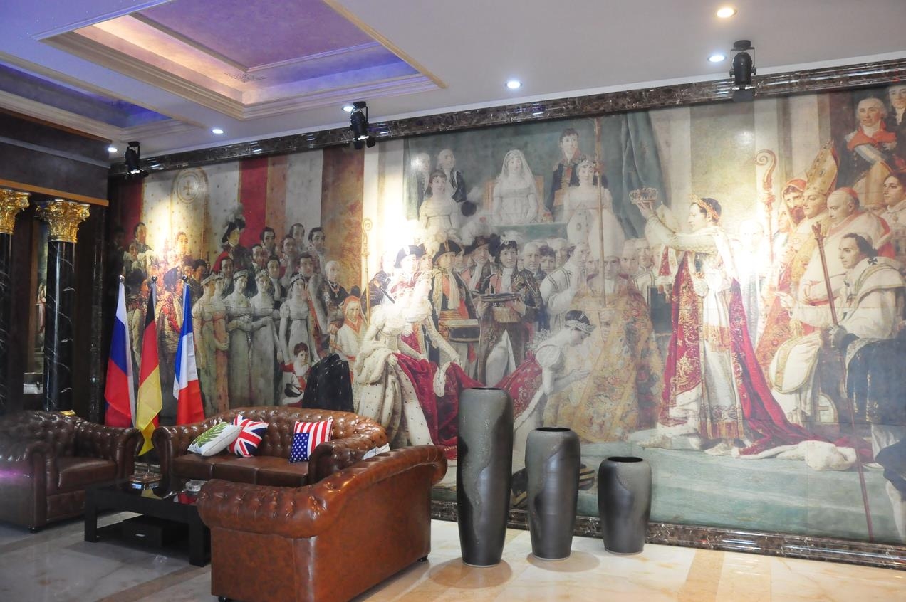 走进展示厅后,最引人注目的是《拿破仑一世加冕图》壁画。据介绍,该壁画由TASSANI塔萨尼中国公司设计部结合展厅装修风格进行色彩搭配后定制的。壁画采用的是TASSANI塔萨尼的色浆制作而成,整幅壁画面积达50平方米,耗资50万元,是目前国内涂料行业最大的一幅墙面壁画。