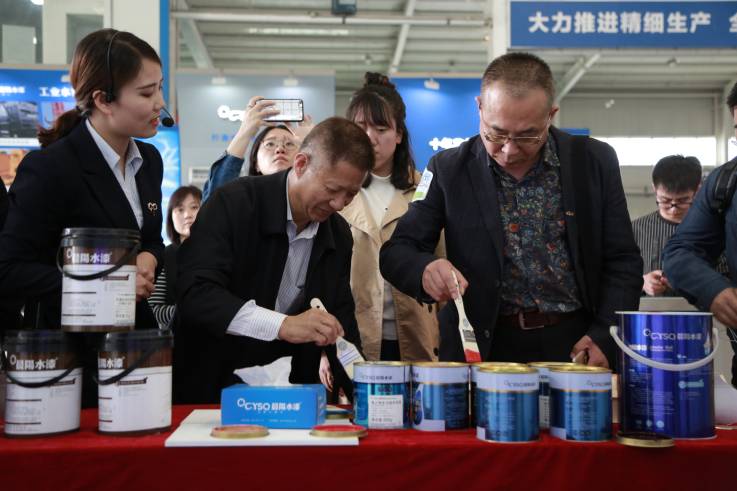 随后,他们一行来到全国最大规模全水漆企业——晨阳水漆,现场观摩了“全球水漆日”的宣传活动。