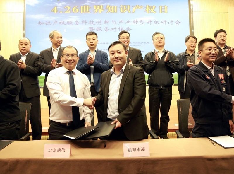 会上,晨阳水漆党委书记、常务副总裁刘占川与北京康信知识产权代理有限责任公司签订了科技服务与产业对接协议。