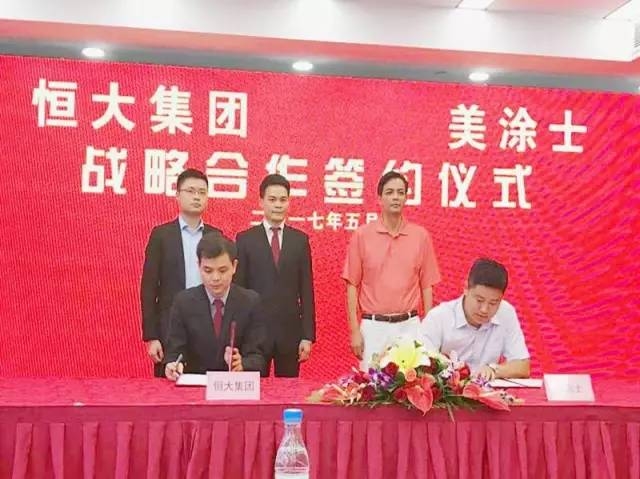 5月22日,广东美涂士建材股份有限公司与恒大集团材料设备有限公司签订了2017-2022年度战略合作协议。据悉,恒大集团承诺在战略合作协议期间给予美涂士10亿元的工程订单。