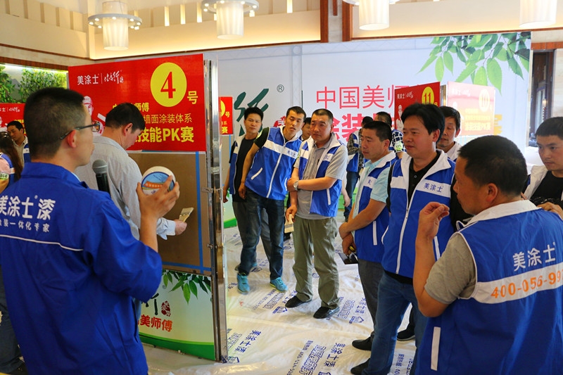 气氛最为活跃的环节则是“中国美师傅”现场PK大赛。以“健康高效墙面涂装体系”产品为材料, 36位油木工师傅代表参与比赛,并最终评选出前十名作为季度“中国美师傅”,将可继续参与年度“中国美师傅”的评选。