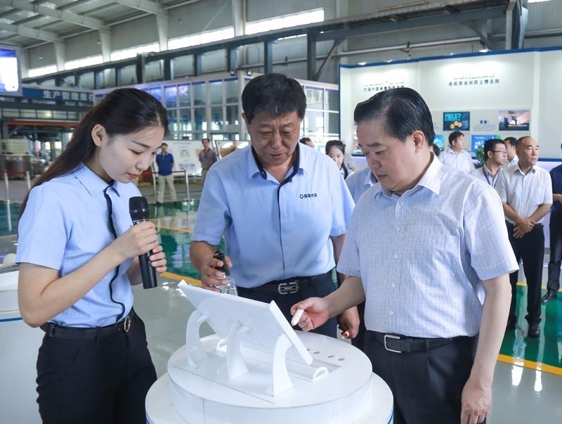 7月7日,河北省人大常委会党组书记、常务副主任范照兵一行到晨阳水漆调研,保定市人大常委会主任马誉峰、徐水区区委书记苏树锋陪同调研。晨阳水漆董事长刘善江,党委书记、执行总裁刘占川向省人大领导一行汇报了晨阳水漆的发展情况。