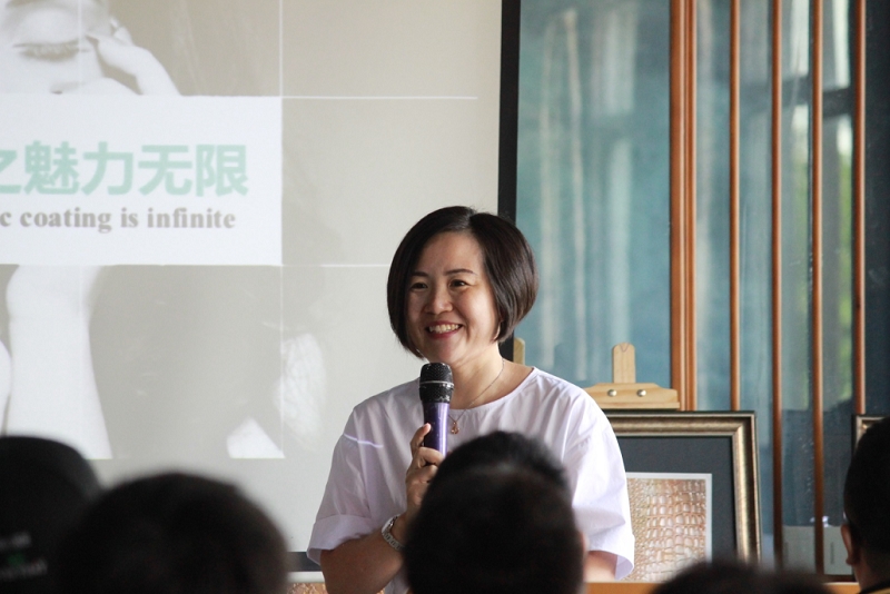 交流会期间,刘芳女士还就意大利TASSANI塔萨尼公司发展历史以及中国公司发展情况作了介绍,同时还就艺术涂料相关话题与大家进行了分享;顺德职业技术学院部分学生亲身体验了艺术涂装工艺。