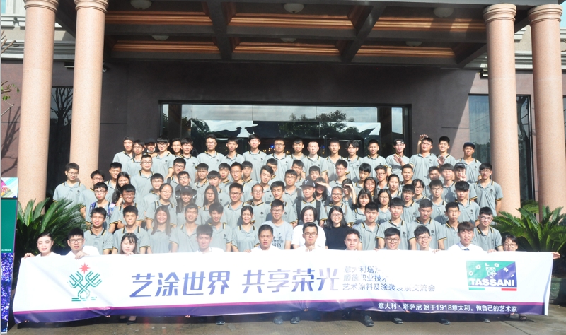 7月7日,由意大利TASSANI塔萨尼中国主办的“艺涂世界·共享荣光”艺术涂料涂装交流会在中山总部举行。顺德职业技术学院艺术涂装工艺班80多名师生应邀参加。