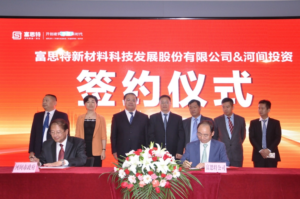 8月9日,富思特新材料科技发展股份有限公司与河北省河间经济开发区管理委员会举行签约仪式。根据协议内容,富思特拟在河间总投资15亿元建设建筑涂料、纳米新材料、装配式房屋等新型建筑部品生产基地。
