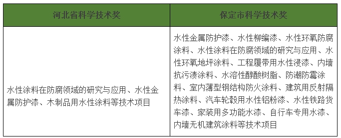 涂界记者注意到,由河北晨阳工贸集团有限公司与河北大学完成的“环境友好型水性涂料的研发与应用”获得2017年保定市科学技术进步奖一等奖;由河北晨阳工贸集团有限公司独立完成的“智能草本内墙水漆”项目获得2017年保定市科学技术进步奖三等奖。