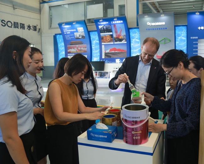 座谈会上,刘善江首先向中国企业联合会国际联络部一行领导介绍了公司理念及发展现状。他表示,“晨阳水漆是中国国内最大的全水漆生产企业,拥有国内唯一一家院士工作站,晨阳水漆引领着水漆涂装时代。水漆产品,不燃不爆,生产、运输过程无污染,可有力减少VOC排放,有利于生态环境,有利于子孙后代。目前从中央到地方,凝聚环保共识,大力整治环境,水漆替代油漆是涂料行业一场不可阻挡的环保革命。”