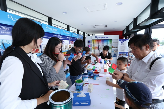 活动当天,吸引了众多游客参观体验,其中,有很多是带着孩子去的。记者看到,一排精美的小房子前放着漆桶和刷子,小朋友们拿着刷子跃跃欲试,想要当一回“小小粉刷匠”,装点属于自己的小窝。带着女儿来试刷的王女士告诉记者,有了孩子后最关心的就是健康问题,听说鸟巢都换了环保水漆,这次也特意带孩子来体验一把,看看水漆究竟有什么魅力。“之前装修也用过油漆,味道很大。水漆一点异味也没有,用起来也放心。孩子尤其喜欢,现在还拿着小刷子不放手。”