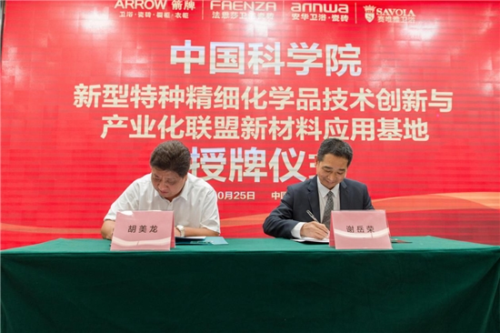 据悉,双方依托乐华集团成立的联盟新材料应用基地,以陶瓷高分子模具胶、浴缸衬底聚合物材料以及木器水性漆三大重点项目为合作切入点,聚焦陶瓷建材产业链的节能环保、性能改进与工艺升级,通过联动创新,切实推动合作企业技术创新与陶瓷建材产业转型升级。