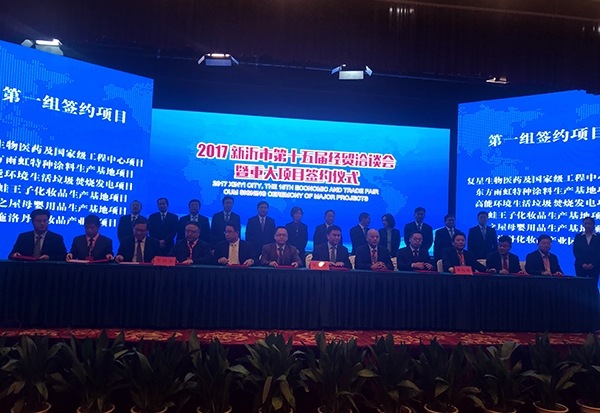 11月8日,新沂市第十五届经贸洽谈会举行。本次洽谈会集中签约项目48个,协议投资总额261.45亿元,协议利用外资2.97亿美元。涂界记者注意到,签约项目包括了东方雨虹DAW特种涂料生产基地项目。