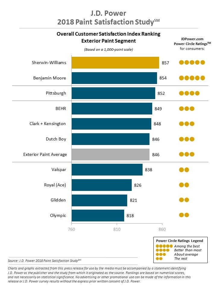 5月23日,J.D. Power 2018涂料满意度研究测量了130亿美元的室内外涂料和染色消费者群体市场的客户满意度。据悉,2018年涂料满意度调查是基于过去12个月购买和使用室内涂料、外墙涂料和/或外墙染色的8144名客户的回应。