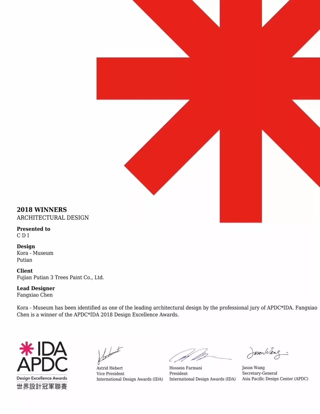 三棵树博物馆荣获APDC*IDA世界设计冠军联赛卓越设计奖