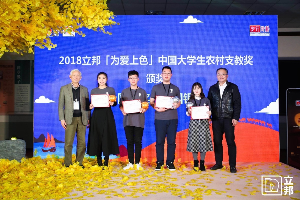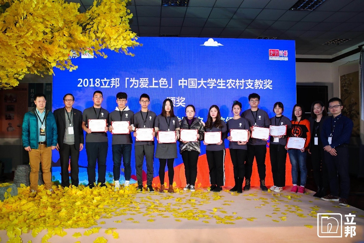 颁奖典礼上揭晓了2018年立邦「为爱上色」中国大学生农村支教奖获奖名单,其中:中南大学为爱而艺·文艺支教团和河北工业大学“七彩微光”大学生支教团获得金奖;安徽理工大学筑心绘梦团队、重庆大学五彩课堂支教实践团、同济大学“新纪元-Era”元谋梦想教室实践团、兰州大学甘南行暑期社会实践团、武汉大学“卫水而生”志愿服务队、西安交通大学“恒如”支教队、中国人民大学“八千里路云和月”、天津大学雏凤清鸣实践队获得银奖。此外,还评选出了全国铜奖40名,校级优秀奖50名,最佳传播奖4名,最佳视频奖4名。
