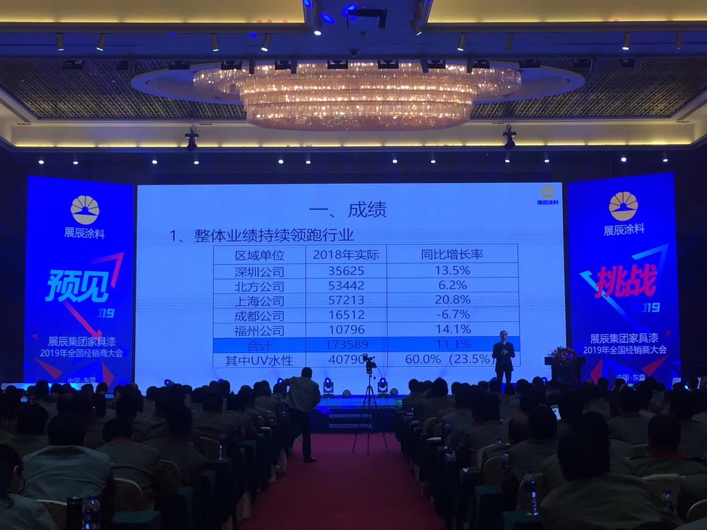 1月16日,展辰集团家具漆2019年全国经销商大会在东莞举行。展辰集团董事长陈冰会上表示,2018年对于整个涂料行业和中国经济的发展都是极为困难的一年,但公司克服了上游材料的大幅上涨、环保和安全政策的日趋严格、自身要求的规范管理、下游终端用户的转型压力传导以及同行之间竞争的白热化等诸多困难,集团家具漆整体销售业绩依然取得了两位数的高速增长,进一步扩大了在行业的领先优势。