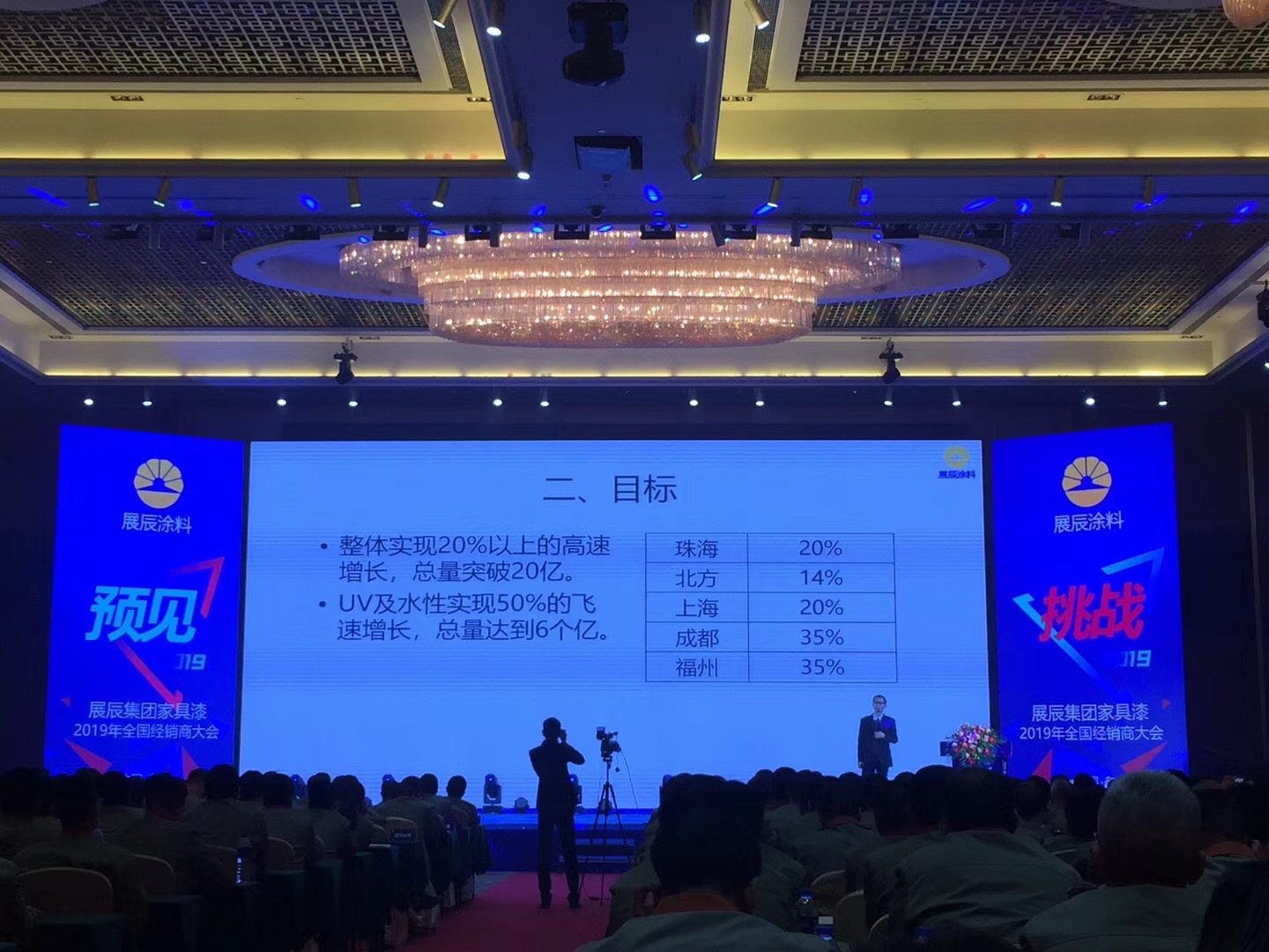 黄少车表示,2019年集团家具漆业务整体将实现20%以上的高速增长,总量突破20亿元;此外,UV及水性漆业务实现50%的飞速增长,总量将达到6个亿。黄少车还对各分公司业绩增速进行了分解,其中:珠海、北方、上海、成都、福州公司将分别实现同比增长20%、14%、20%、35%、35%。