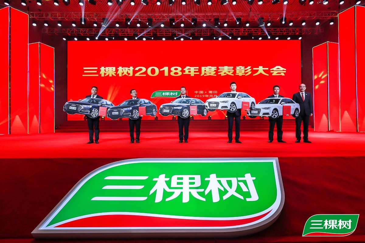 1月24-27日,以“赋能、多能、效能”为主题的三棵树2019年度会议在莆田会展中心召开,三棵树董事长洪杰以及集团公司人员近4000人出席会议。会议期间,董事长年度工作报告,以及全员培训、优秀员工事迹报告、知识竞赛、表彰大会、迎新春晚会等相继举行。