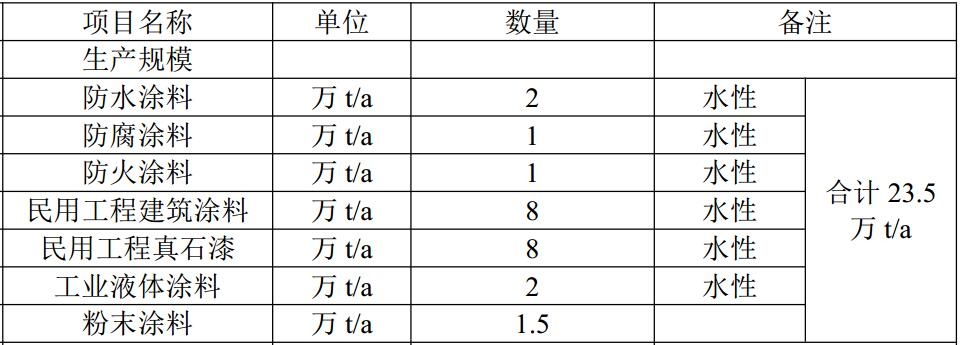 资料显示,该项目建成投产后将形成年产23.5万吨涂料的生产规模,其中年产防水涂料2万吨、防腐涂料1万吨、防火涂料1万吨、民用工程建筑涂料8万吨、民用工程真石漆8万吨、工业液体涂料2万吨、粉末涂料1.5万吨。全部项目达产后,年可实现销售收入30亿元,年利润5亿元。