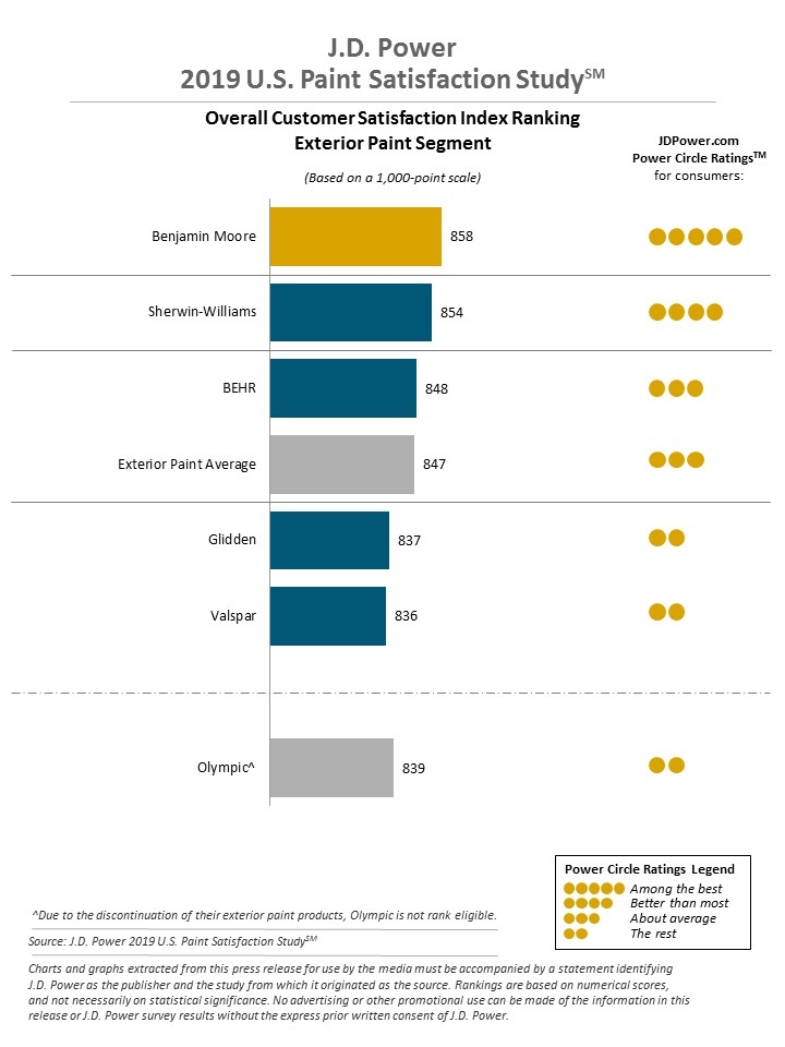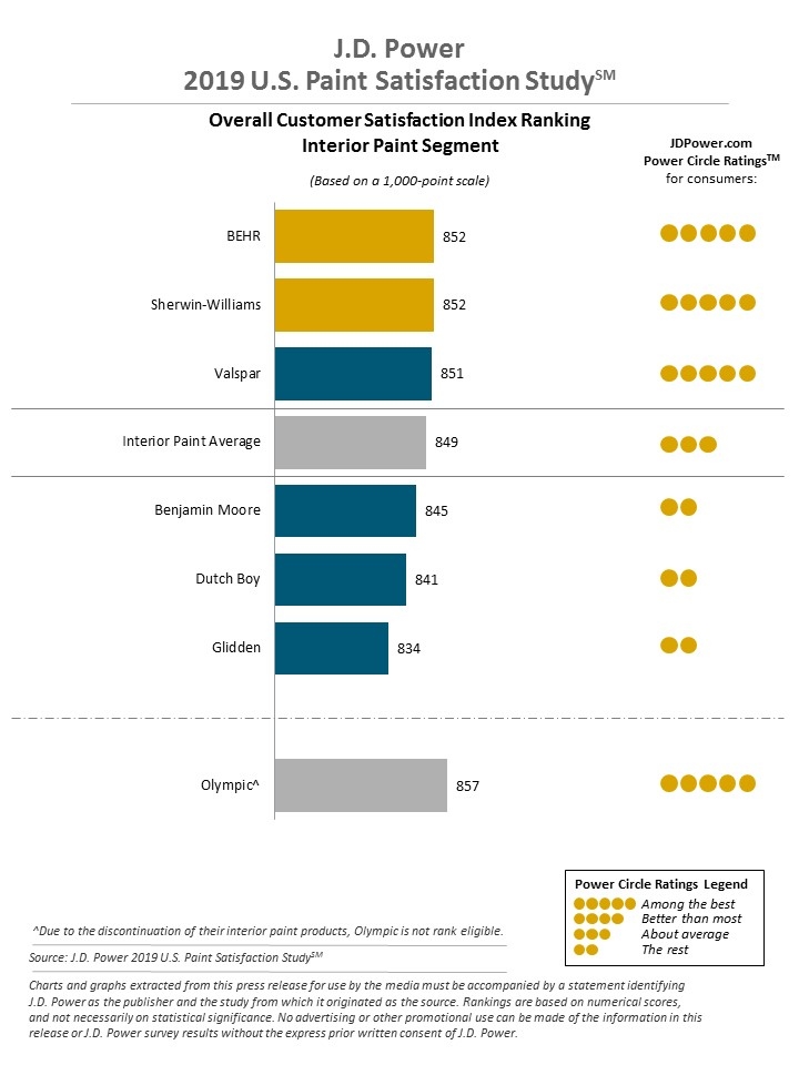 4月3日,全球领先的市场研究机构J.D. Power(君迪)发布了“2019年涂料满意度研究”(J.D.Fower 2019 Paint Satisfaction Study)。据悉,2019年涂料满意度调查基于过去12个月内购买并应用了内墙涂料、外墙涂料和/或外部污渍的5884名客户的回复。该研究于2019年1月进行。