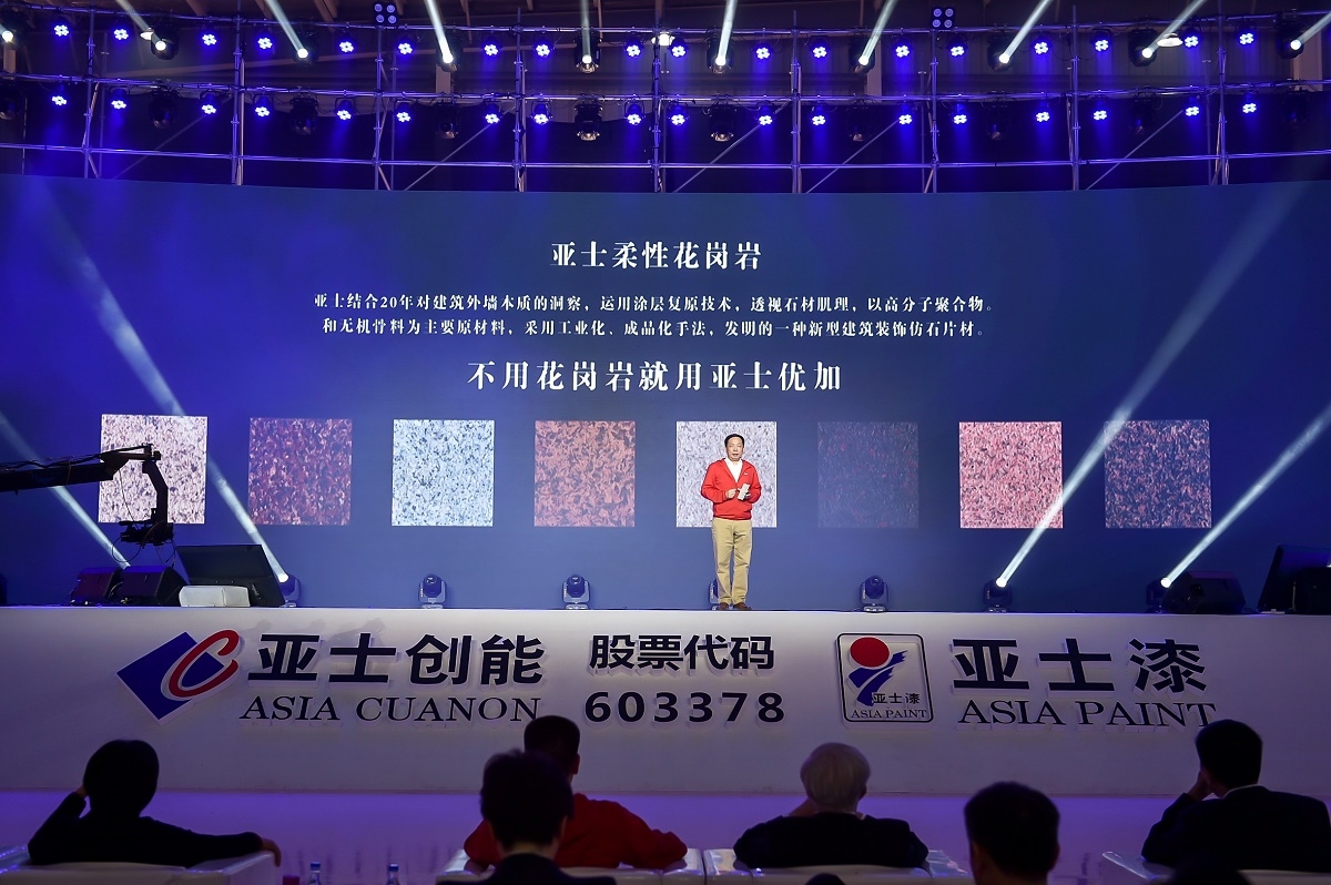 涂界记者注意到,在去年10月13日举行的亚士20周年庆典仪式上,亚士正式推出了最新研发的高端产品U+系列、亚士优加柔性花岗岩、亚士优加优石花岗岩。据了解,亚士优加柔性花岗岩,直击材料本质,运用超前的涂层复原技术,透视石材肌理,采用工业化、成品化手法,减少现场施工工序,让涂装更环保,施工更简单。