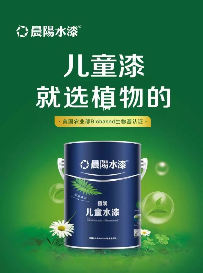 据了解,晨阳植润儿童水漆通过了美国农业部生物基认证,晨阳植润儿童水漆植物萃取(主要)采用北欧原产地松树叶、松子及北欧的枫树叶,生物基C14含量34%,远高于农业部认证的生物基涂料标准生物基C14含量25%以上要求。另外,晨阳植润儿童水漆还通过了法国VOC检测A+级环保认证,并获得了多项专利技术。