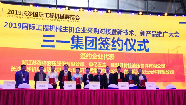 5月17日,2019国际工程机械主机企业采购对接暨新技术、新产品推广大会在展区内同步召开,众多一线工程机械强企推出新产品、新技术。其中,中国最大的工程机械制造企业三一集团在现场举办了签约仪式,与中国水漆知名品牌晨阳水漆达成战略供方深度合作,全面推行“油转水”。