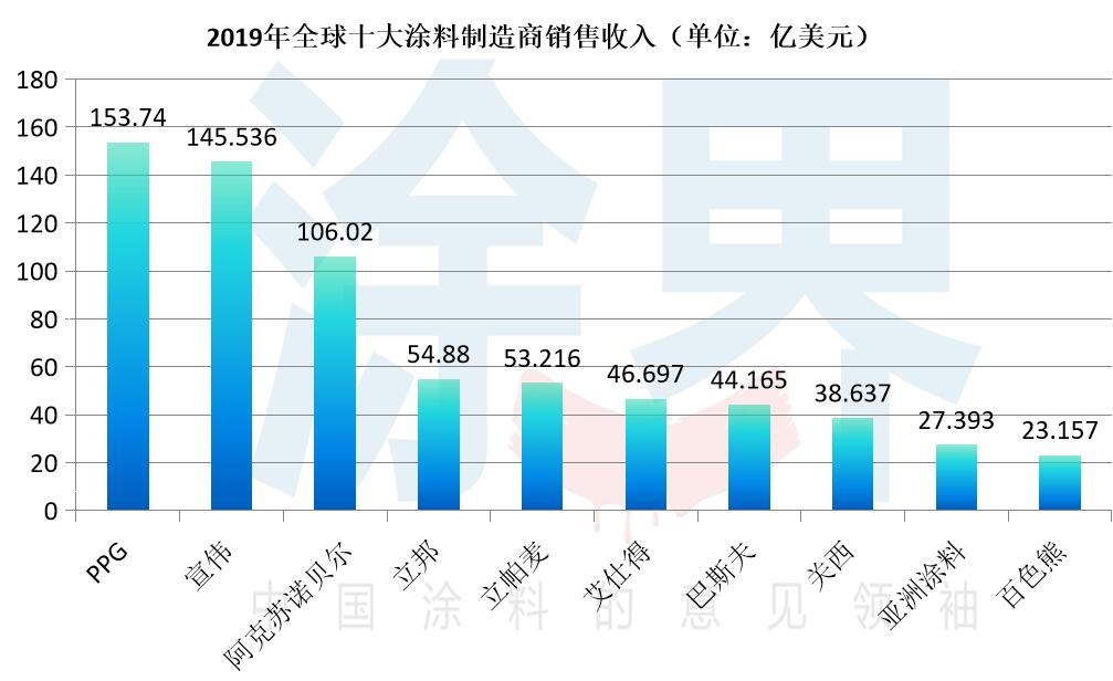 涂界昨日公布的2019年全球十大涂料制造商排行榜显示,美国Behr百色熊以23.157亿美元销售收入位居第十位。据悉,这已是百色熊第二年跻身该排行榜。