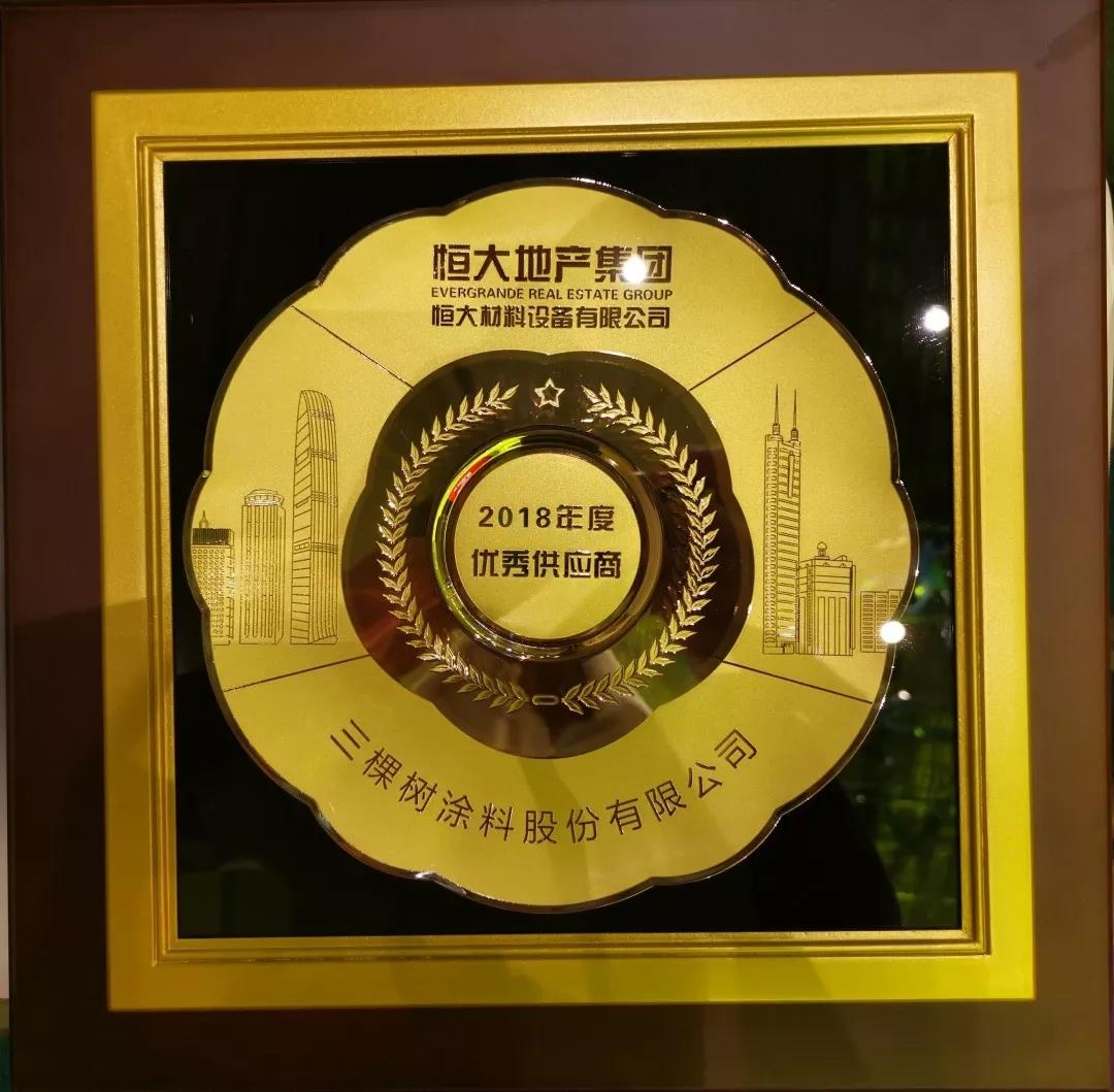 5月16日,恒大地产集团材料设备2018年度优秀供应商颁奖典礼在深圳举行。会上对2018年作出重要贡献的恒大战略合作企业进行表彰,三棵树第九次获得“恒大地产集团优秀供应商”荣誉称号并首次获恒大2018年度质量优质奖。