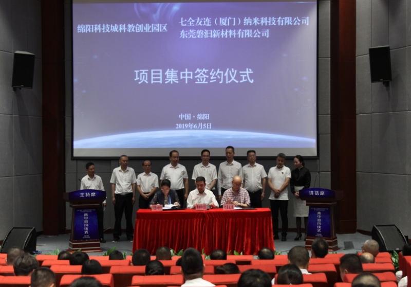 6月5日,中国(绵阳)科技城航天军民融合产业园第一批招商引资重点项目签约仪式在科创区创新中心举行。该园区管委会代表与七全友连(厦门)纳米科技有限公司董事长汪小容签署了项目投资协议。