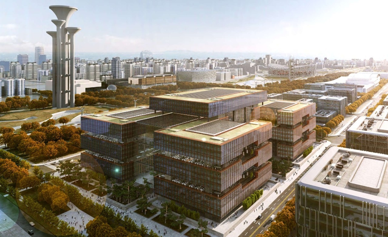 亚洲基础设施投资银行是全球首个由中国倡议设立的多边金融机构,其总部永久办公场所项目位于北京奥林匹克公园中心,是奥林匹克公园地区的重要组成部分。它建成后,将成为北京市的新地标。该工程建筑面积39万平方米,为框架高层建筑,计划于2019年7月28日竣工。该工程质量要求取得绿色建筑三星、LEED铂金级认证,按照鲁班奖标的施工。同时,工程抗震设防裂度为8度,设计使用年限100年,建筑耐火等级一级,由清华大学建筑设计研宄院有限公司设计。