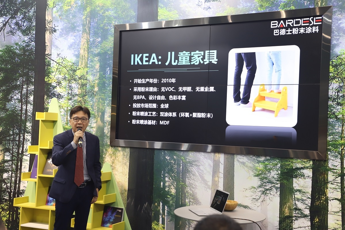 方立城博士现场还介绍了巴德士木器粉末涂料博士级的研发管理团队、生产制造实力、取得的荣誉及木器粉末涂装线、粉末木制家具的特点、应用领域、OEM服务模式及流程。全面展示出了OEM博士的高品质粉末木制家具OEM综合解决方案的价值所在。