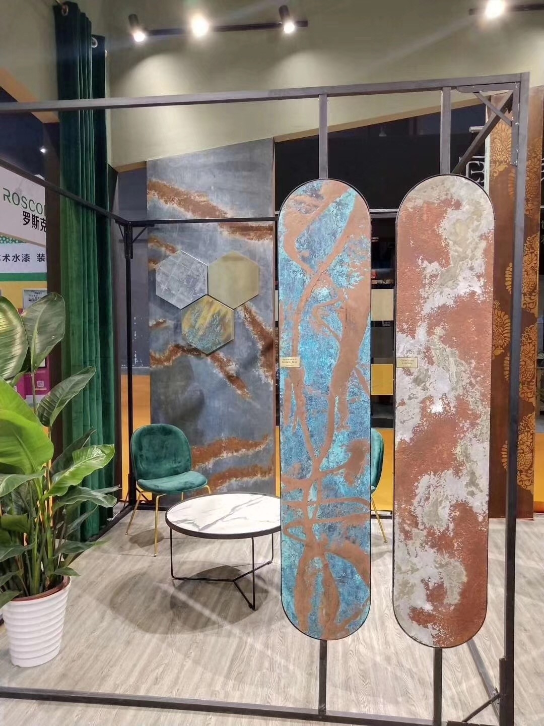 Roberta认为,2019年艺术涂料领域以色彩元素为主,时间与美丽永恒不变的主题贯穿了整个年度。其中,金属艺术漆流行趋势从亮光变为哑光,复古风又重新回归人们的视线,哑光是一种沉着稳重、博大的色彩,金属复古元素,其强大的属性指引着我们对未来充满希望。